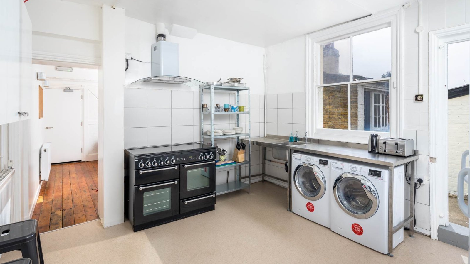 Communal kitchen with gas cooker, frdige/freezer, washing machine, microwave, kettle, toaster