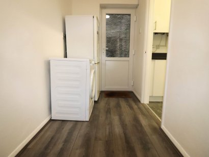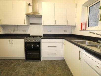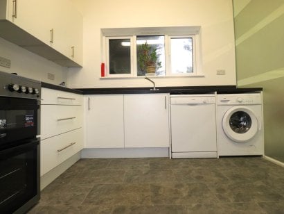 Shared kitchen with gas cooker, fridge/ freezer, washing machine, tumble dryer and microwave.